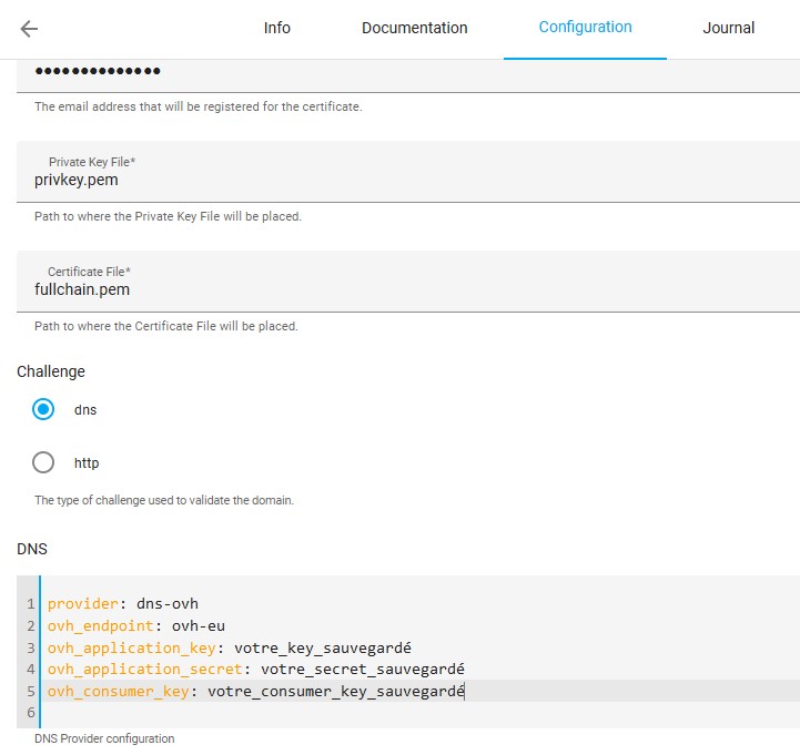 Certificat Let’s Encrypt dans Home Assistant challenge DNS avec OVH.
